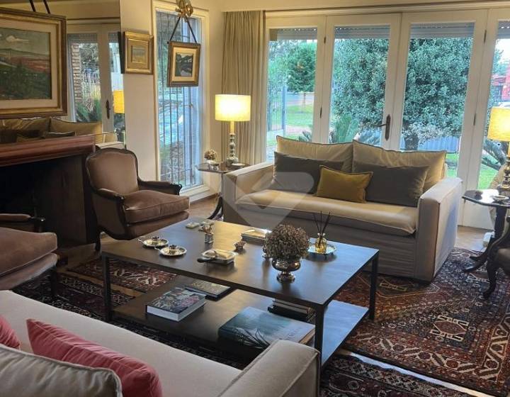 Importante casa en Carrasco Sur, desarrollada en 2 plantas- CON ASCENSOR!Amplio hall de entrada. Comedor al frente. Gran living con estufa a leña. Cocina con office. Toilette. Escritorio con entrada independiente. Estar con estufa a leña y salida al jardín. De la cocina, sale la escalera de servicio, que va hacia 2 dormitorios de servicio con baño completo.